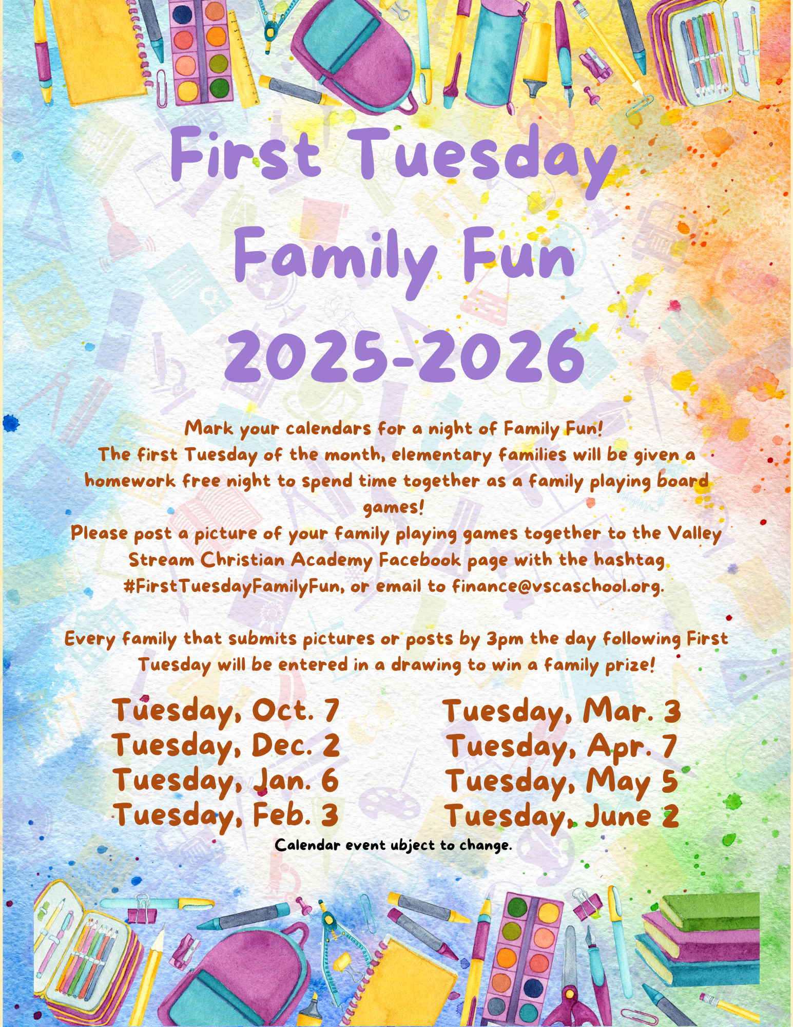 First Tuesday is for families of students in PreK-5th grades.